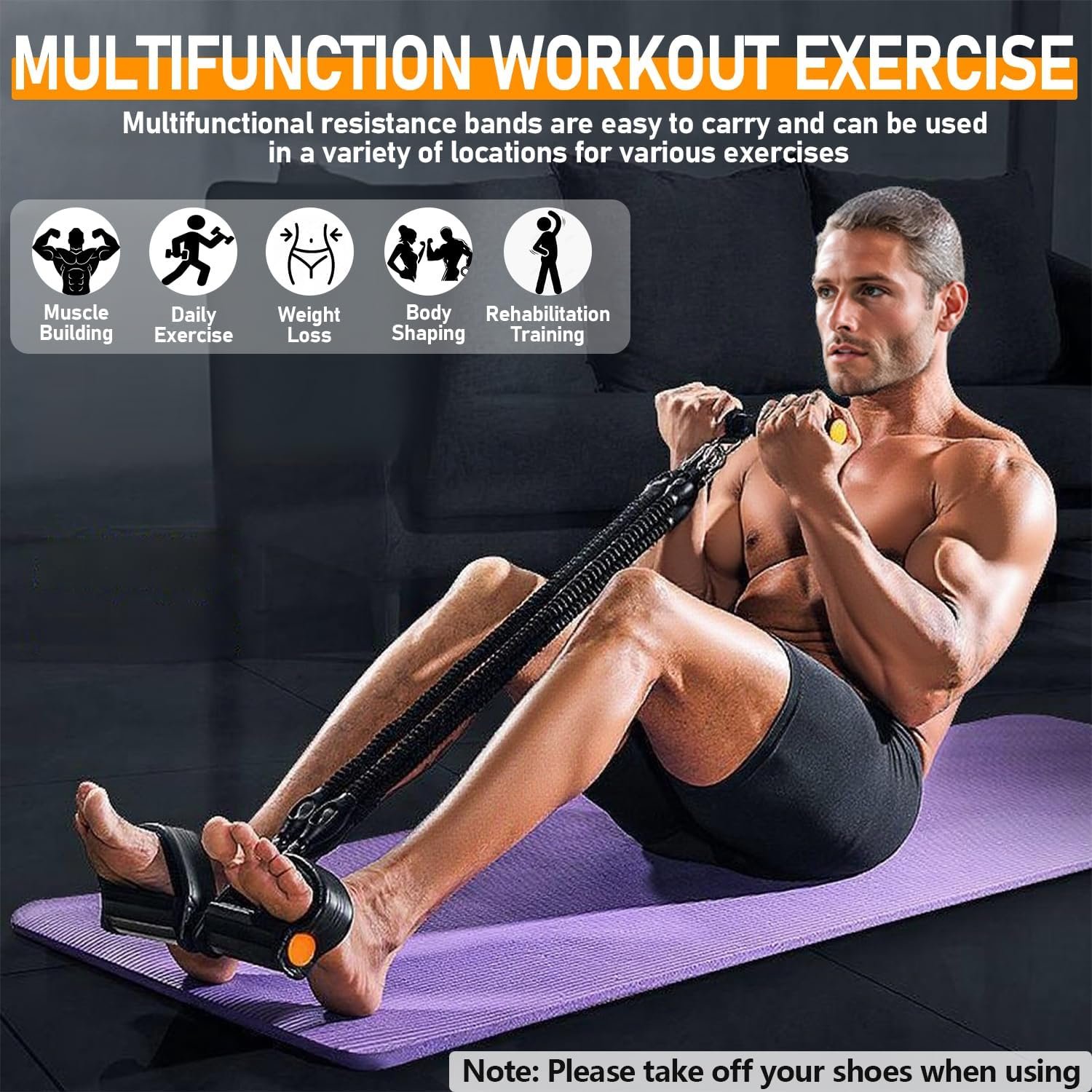 2026 Upgrade Foot Pedal Resistance Band, Adjustable 4-Tube Pedal Ankle Puller Resistance Band with Handle, Multifunction Home Gym Equipment, Stirrup Puller for Men Women for Full Body Exercise