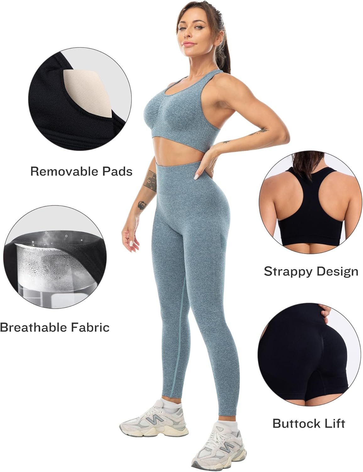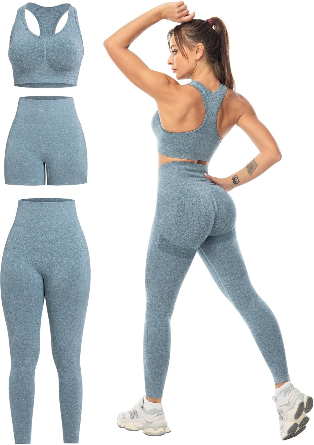 3 Piece Workout Sets for Women Butt Lifting Leggings with High Impact Sports Bra Gym Shorts