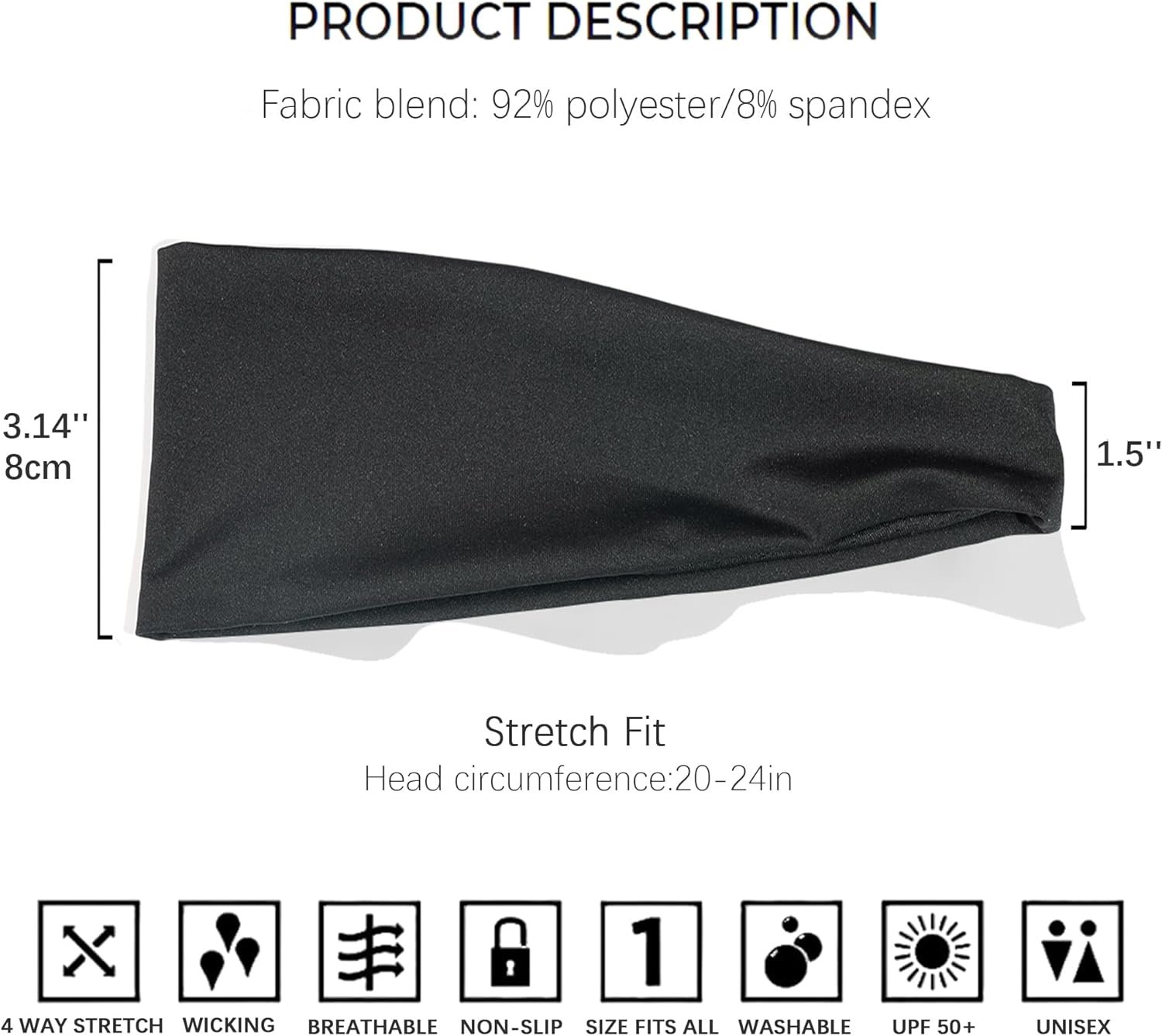【Professional Sports Fabric】These sports headbands are made of 92% polyester and 8% spandex. They're soft and flexible, but firm enough to hold comfortably in place all day, fits most head circumferences.