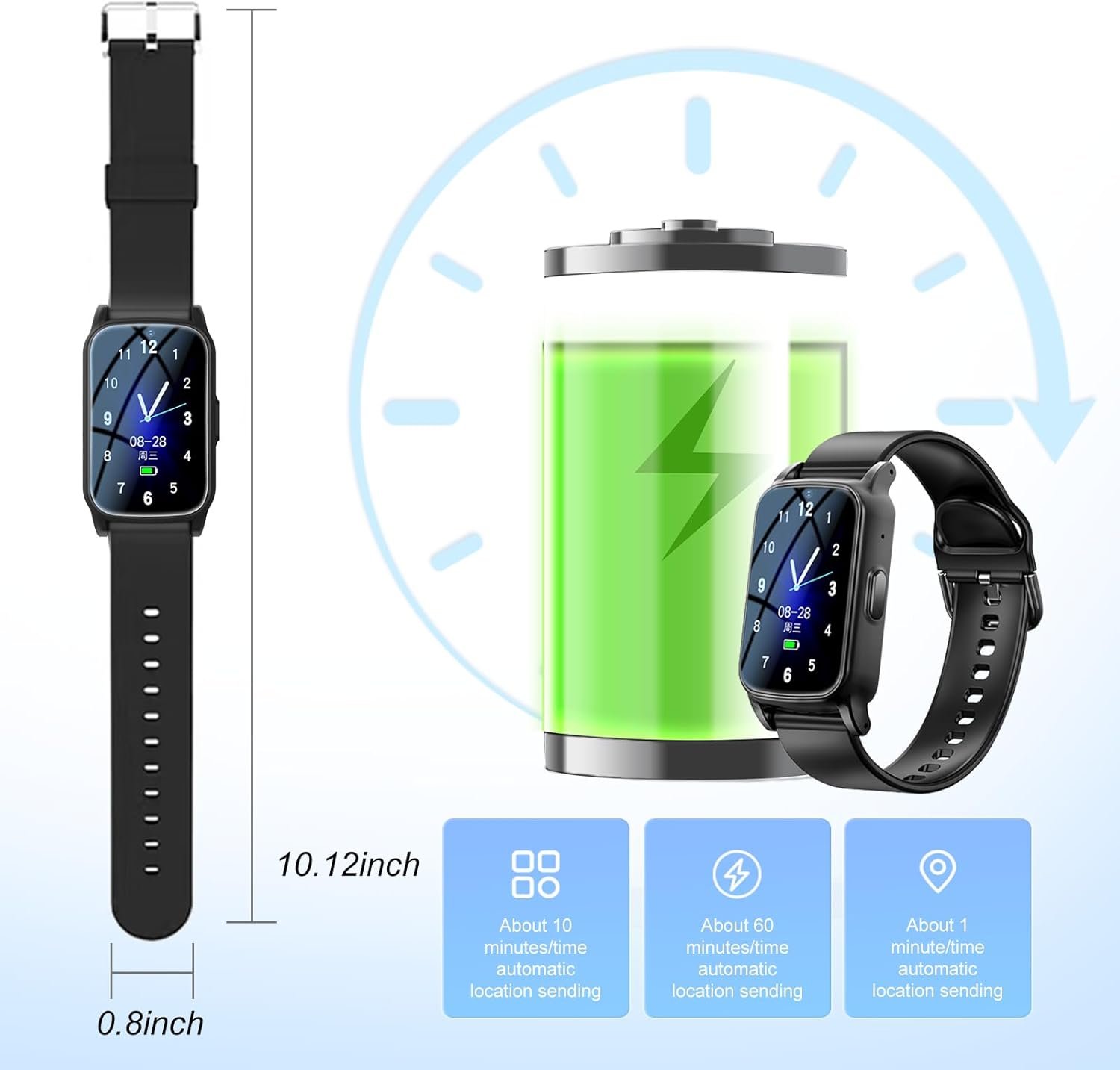 4.[GPS Tracker & Safe Zone]GPS tracker watch has built-in GPS smart positioning, Multiple Positioning Modes, device position data uploading automatically in real time. Past locations of the gps tracker watch in latest 1 month will be stored in system for your future checking. Especially for adults with early-stage dementia and Alzheimer's. GPS tracker made for vulnerable people, making it the best choice for your loved ones.