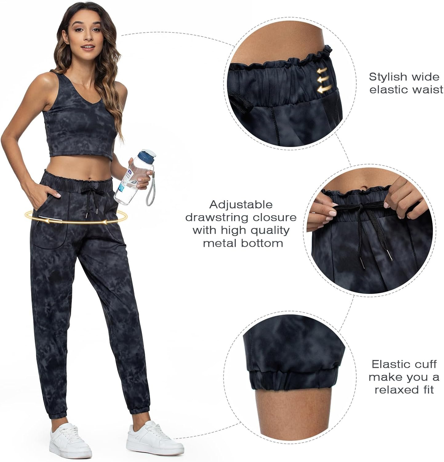 Haowind Joggers for Women with Pockets Elastic Waist Workout Sport Gym Pants Comfy Lounge Yoga Running Pants