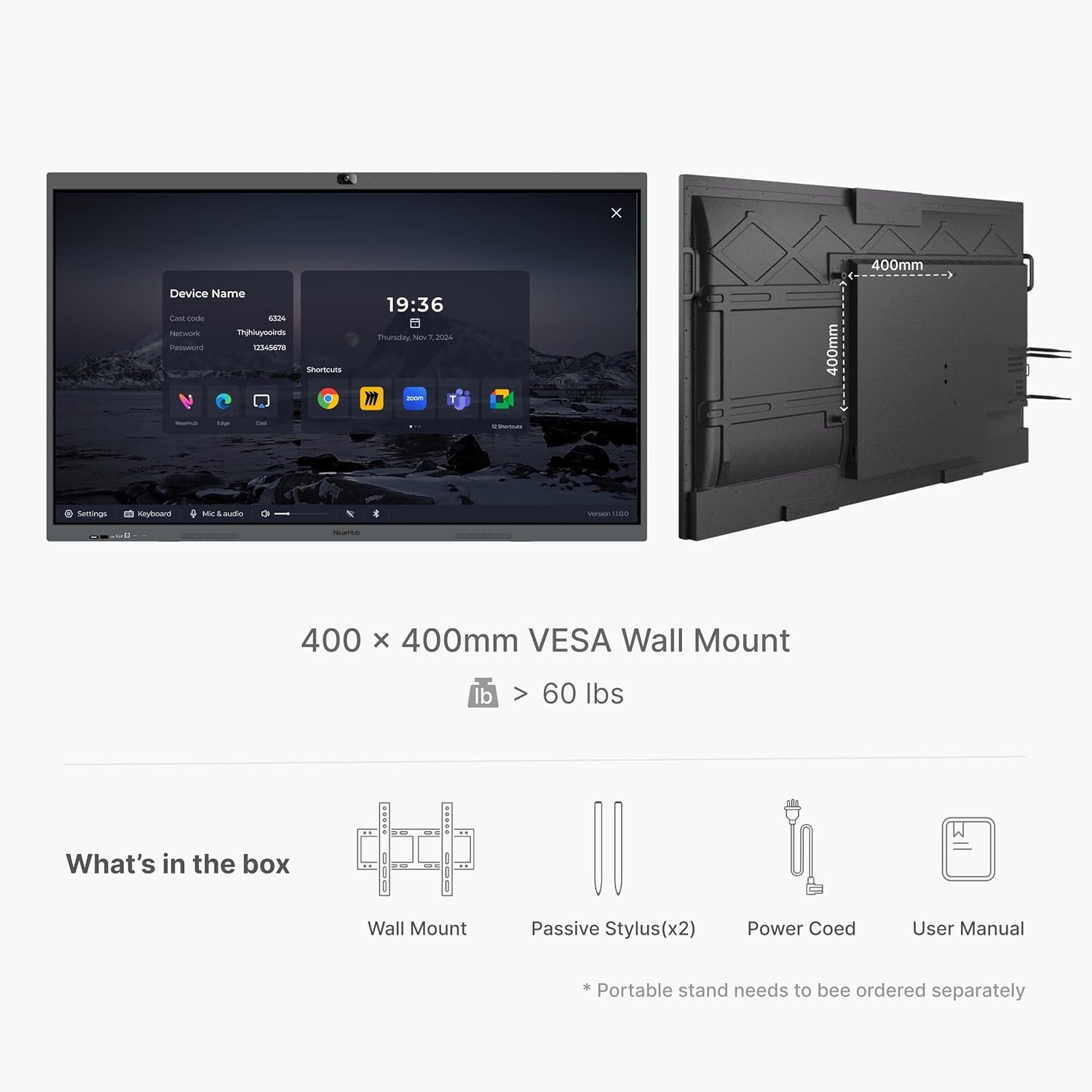 Wired & Wireless Screen Sharing with Real-Time Collaboration:Share content instantly from laptops, tablets or smartphones via AirPlay, HDMI, Tail Cast or App Cast. Collaborate in real time using the NearHub Whiteboard, web browsers or mobile devices, and enhance discussions with annotations, comments and stickers. All content is automatically saved to the cloud—no more lost ideas or manual exports.