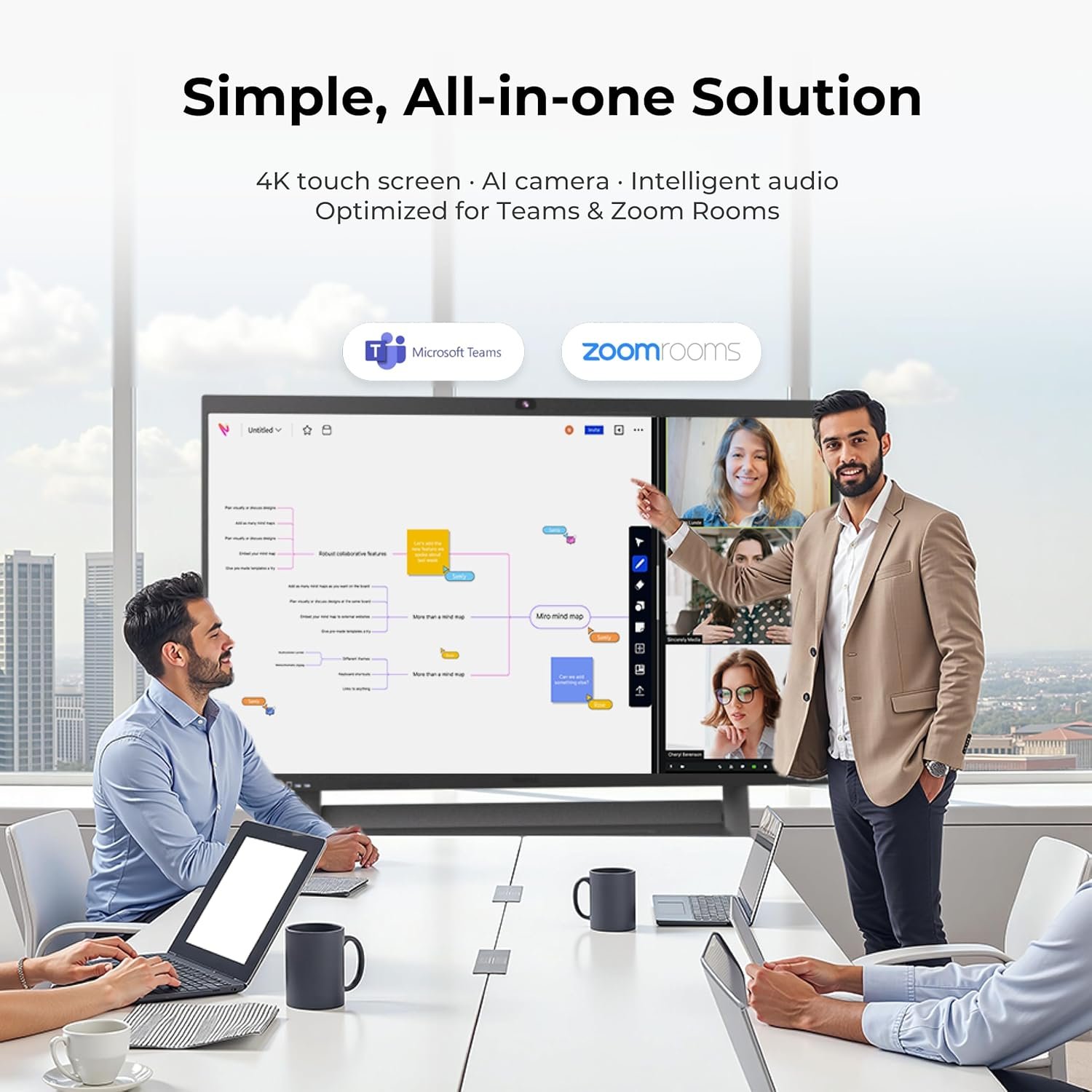 Professional-Grade 4K Touch Display with Ultra-Low Latency:The 4K UHD LCD touchscreen delivers crisp visuals with 6ms ultra-low input latency and supports up to 20 simultaneous touchpoints. Multiple users can write, draw or annotate at the same time with a stylus, ensuring smooth, natural interaction for meetings, training and collaborative brainstorming.