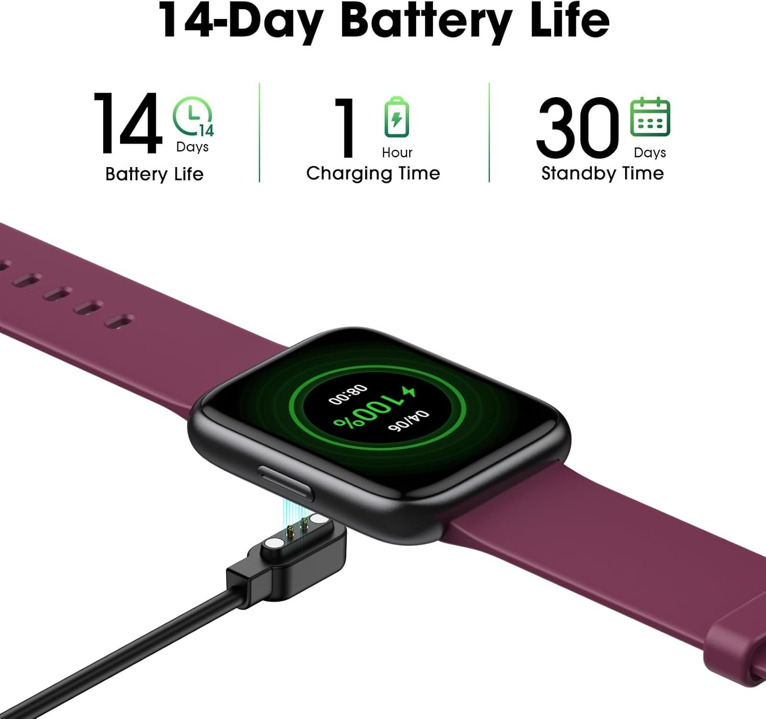 【Long Days Battery Life】With a high-capacity battery, this activity tracker lasts up to 14 days on a single charge and can stay in standby mode for up to 30 days; It takes only about 1.5 hours to fully charge; Perfect for business trips or travel.