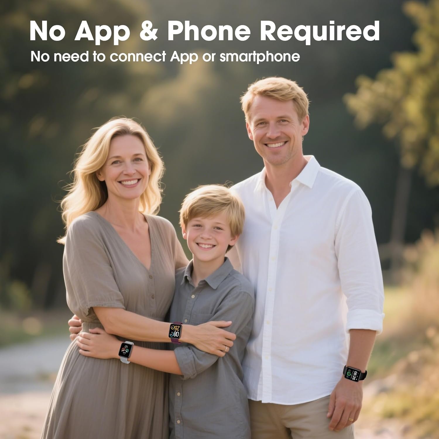 【No App/Phone Required Smart Watch】This smart watch works without any apps or linking to smartphones!; It's as easy to use as a regular watch but smarter; Perfect for those who want a simple fitness tracker without setting up with a smartphone.