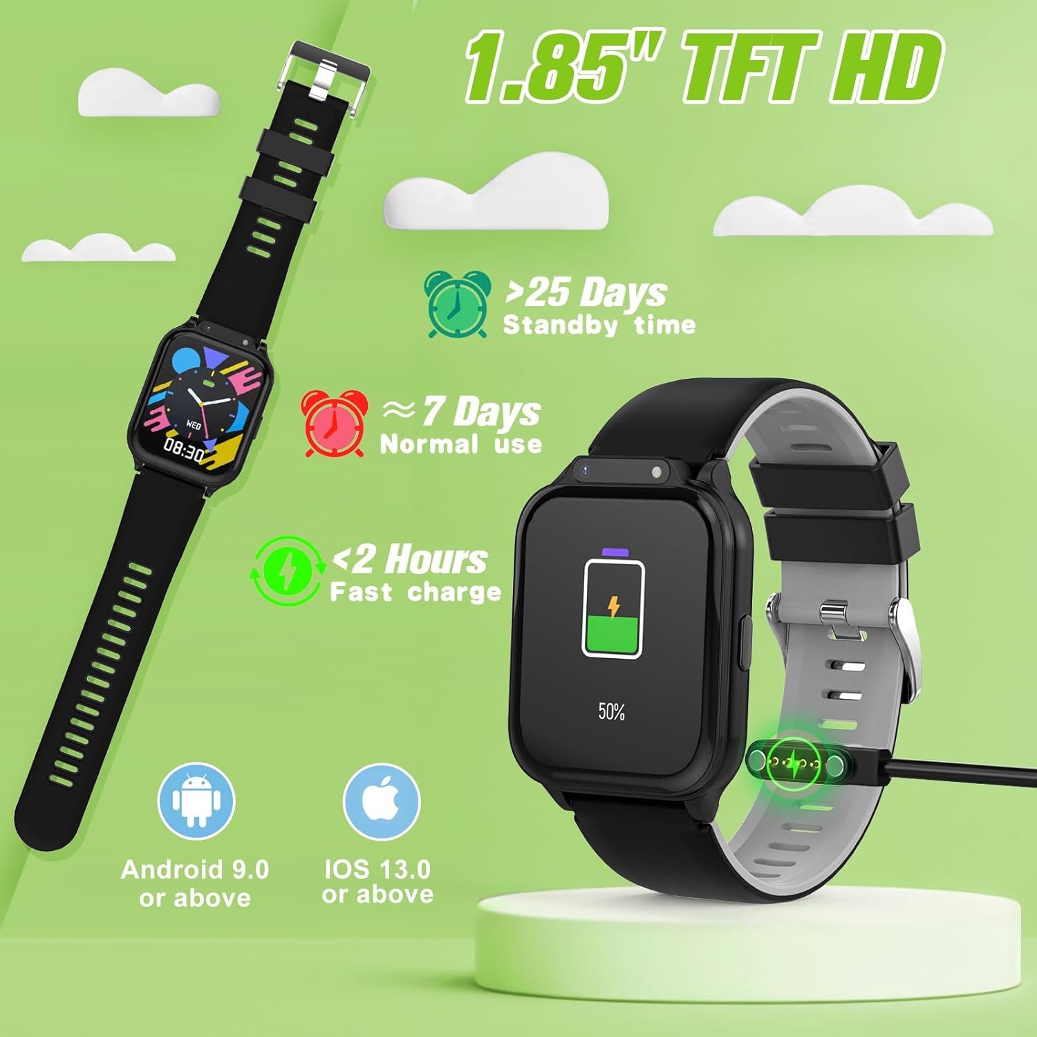 My 7 year old loves this watch. Watch came fully charged and my son is rally happy getting this gift. This kids’ smartwatch is packed with features—step counter, heart rate monitor, sleep tracker, and even a camera. The large 1.85” screen is clear and easy for kids to use, and the DIY dial makes it fun to personalize. It’s lightweight, waterproof (IP68), and offers 22+ sport modes to keep kids active. Works with or without an app, making it parent-friendly too. A great gift option for kids. My son has become more active nowadays because of amazing features of this product.