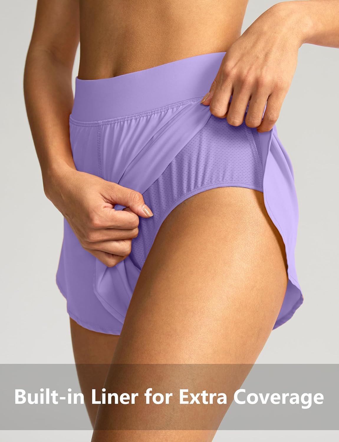 Soothfeel High Waisted Athletic Running Shorts for Women Dolphin Shorts High Split Quick Dry Gym Workout Shorts with Liner