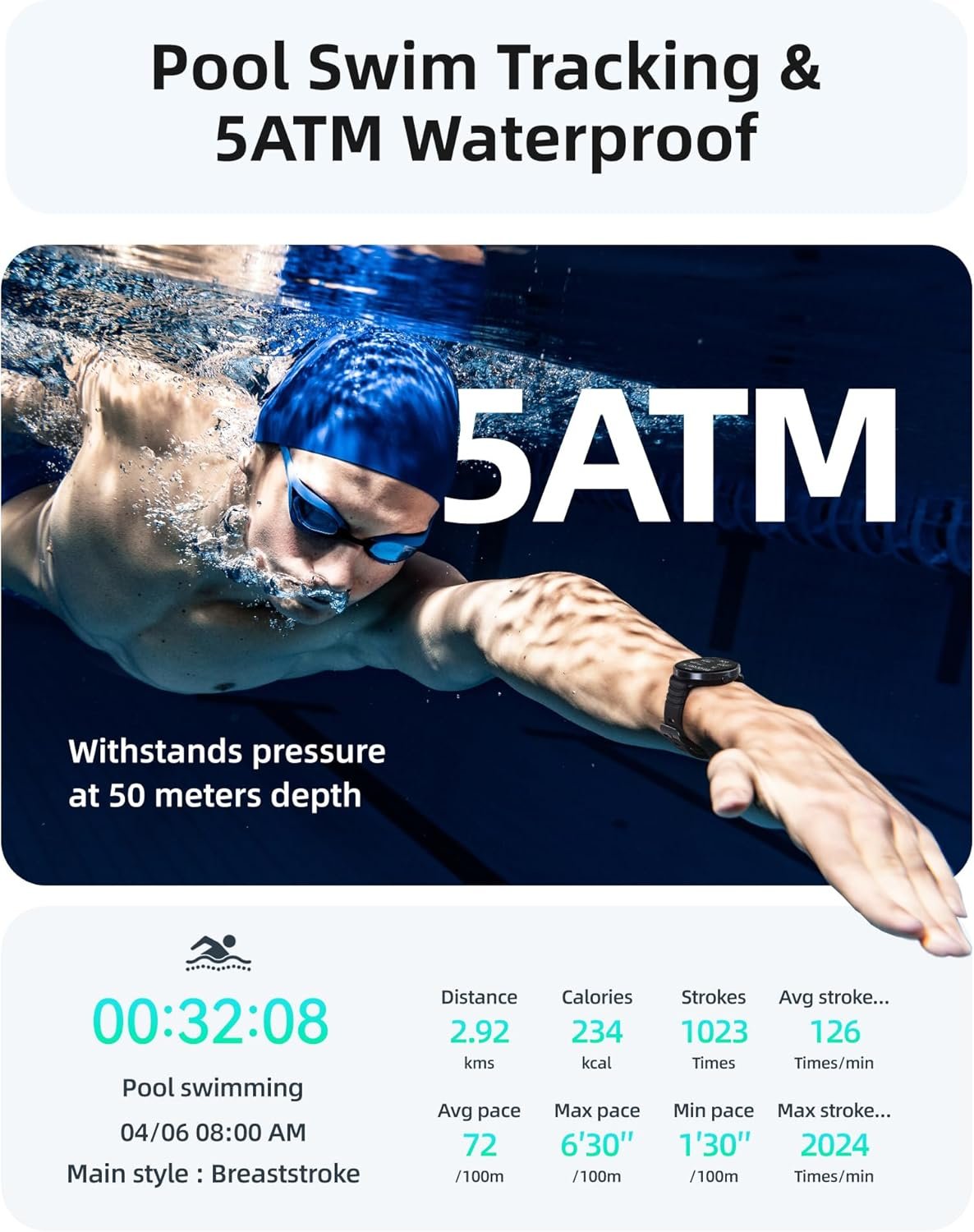 Parsonver Swimming Smart Watch: 5ATM Waterproof for Pool